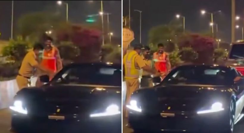 ഫെരാരി കാര് തടഞ്ഞ് പൊലീസ്; ഡ്രൈവിങ് സീറ്റിലെ ആളെ കണ്ടതോടെ ഹസ്തദാനവും കുശലന്വേഷണവും