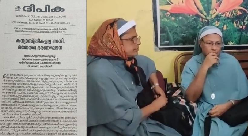 ഛത്തീസ്ഗഡിൽ മലയാളി കന്യാസ്ത്രീകളുടെ അറസ്റ്റിൽ രൂക്ഷ വിമർശനവുമായി കത്തോലിക്ക സഭ മുഖപത്രം ദീപിക. കന്യാസ്ത്രീകളല്ല, മതേതര ഭരണഘടനയാണ് ബന്ദികളാക്കപ്പെട്ടത്.ന്യൂനപക്ഷങ്ങൾ കേരളത്തിലൊഴികെ എല്ലായിടത്തും അരക്ഷിതാവസ്ഥയിലാണ്. രാജ്യം ഭരിക്കുന്ന ബിജെപിയുടെ ആശിർവാദത്തോടെയാണ് ഇതെല്ലാം നടക്കുന്നതെന്നും വിമർശനം.
