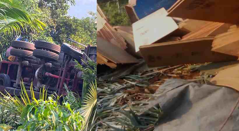 വലിയകാവുംപുറത്തെ പ്ലൈവുഡ് കമ്പനിയിൽ നിന്നും ലോഡുമായി പുറത്തേയ്ക്ക് ഇറങ്ങുമ്പോഴായിരുന്നു അപകടം. നാഷണൽ പെർമിറ്റ് ലോറിയുടെ നിയന്ത്രണം നഷ്ടമായതോടെ ഡ്രൈവർ സൈഡിൽ ഇടിപ്പിച്ചു നിർത്താൻ ശ്രമിച്ചെങ്കിലും നടന്നില്ല. റോഡ് സൈഡിലെ കൈതത്തോട്ടത്തിലേക്ക് ലോറി മറിയുകയായിരുന്നു. ഒരു വശത്തേക്ക് മറിഞ്ഞ ലോറിയിൽ നിന്നും കെട്ടുപൊട്ടി പ്ലൈവുഡ് പ്രദേശമാകെ ചിതറി വീണു.